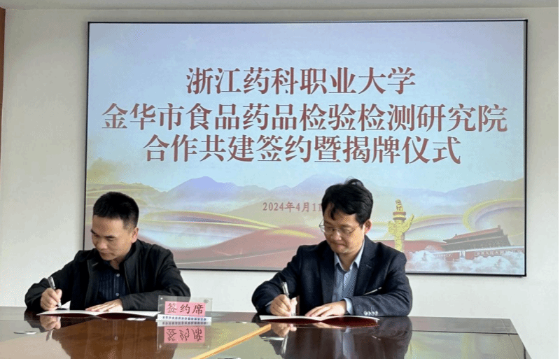为整合人才、技术、行业资源,共同推进化妆品专业技术人才质量提升,近日,制药工程与生物技术学院、化妆品学院与金华市食品药品检验检测研究院举行了签约暨揭牌仪式。双方负责人进行了现场签约。相关单位和骨干教师出席签约暨揭牌仪式。