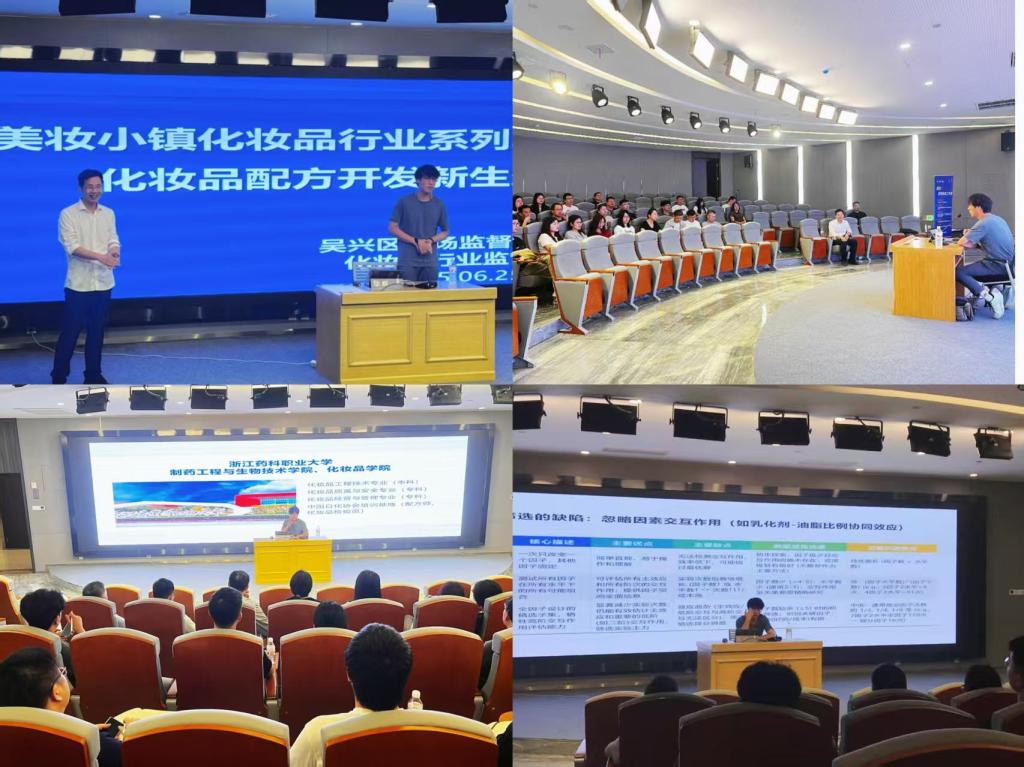 2025年6月25日,制药工程与生物技术学院、化妆品学院王乐健老师应湖州市吴兴区市场监督管理局邀请,在湖州美妆小镇为当地化妆品企业的研发及质量管理人员作了题为“化妆品配方开发新生态”的专题讲座。来自15家化妆品企业的30余位从业者参与了此次活动。此次讲座也是浙江药科职业大学深度参与共建美妆产业学院后,面向地方企业提供的系列智力支持活动之一。