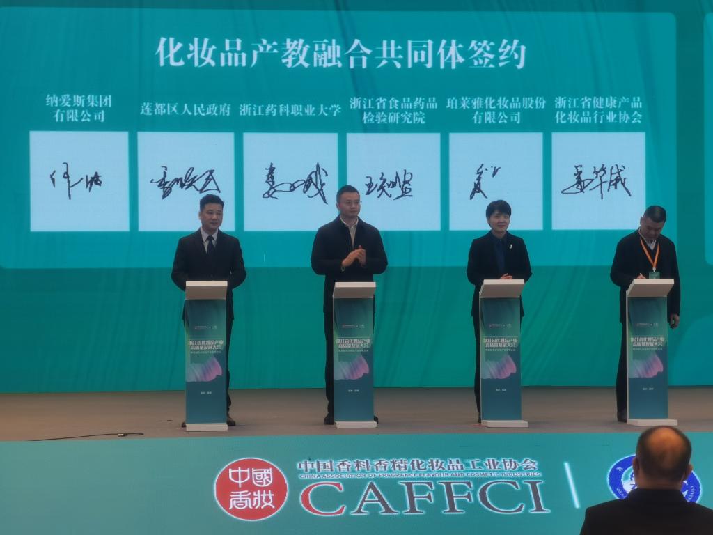 大会举行了“化妆品产教融合共同体”(下称“共同体”)签约仪式,校长娄小娥与莲都区人民政府、珀莱雅化妆品股份有限公司、纳爱斯集团有限公司、浙江省食品药品检验研究院、浙江省健康产品化妆品行业协会负责人等出席签约仪式。
