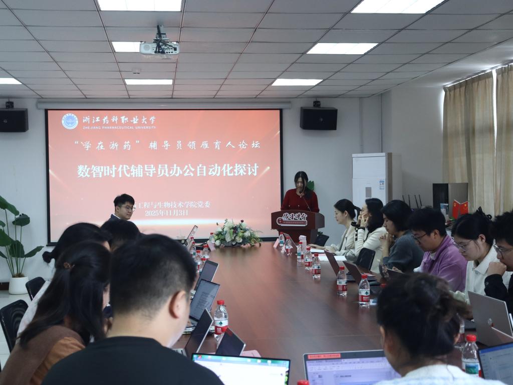 近日,“学在浙药”辅导员领雁育人论坛在鄞州校区1119会议室顺利举办。本次论坛以“数智时代辅导员办公自动化研讨”为核心主题,通过政策领学、专家讲座、交流研讨等形式,为提升辅导员数字化办公能力与网络思政效能搭建专业交流平台。相关专家、学工部(学生处)领导、各学院党委书记(副书记)、学工秘书、辅导员及学院班主任、学生干部代表等参加了学习交流。